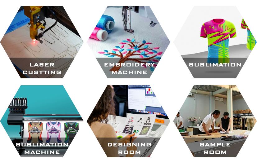 Our service extended from producing custom-made Sports Wear, Casual Wears, Fitness Wears and other sports clothing for amateur & Professional teams to developing a complete range of merchandise for professional organizations completed with embroidered logo and printed name & numbers etc.