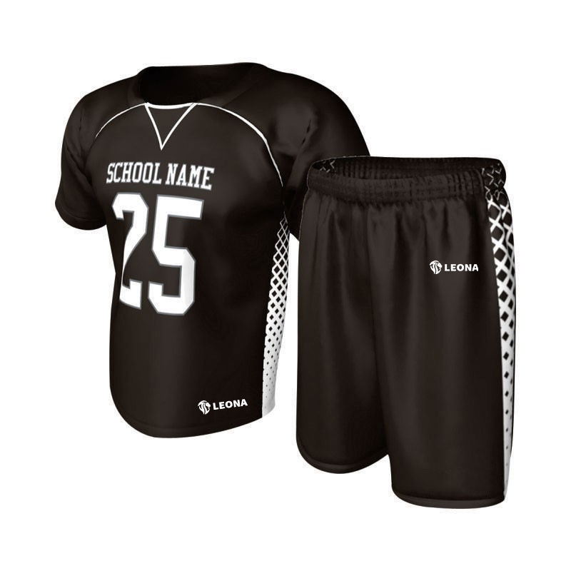 The uniforms for lacrosse players consist of a jersey and shorts. Players on the same team wear the same colored uniforms generally with a number and name on the back of the jersey. … The kit includes the jersey, shorts, socks, cleats and shoes.